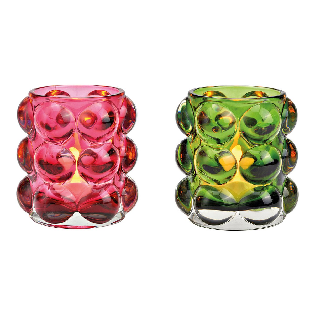 Stikla svečturi “Bubble”, zaļa/rozā, divi izmēri
