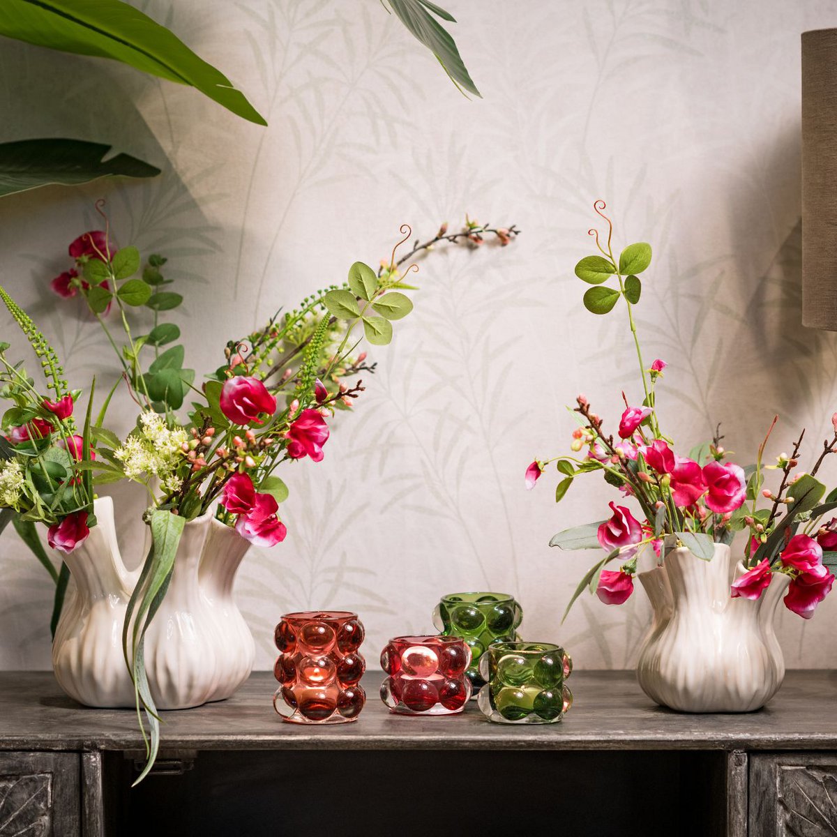 Šie elegantie svečturi ir īsts uzmanības piesaistītājs. Izgatavota no stikla skaistā zaļo un rozā toņu kombinācijā, tai ir unikāls, bumbiņas formu dizains, kas rada pievilcīgu un mājīgu noskaņu.