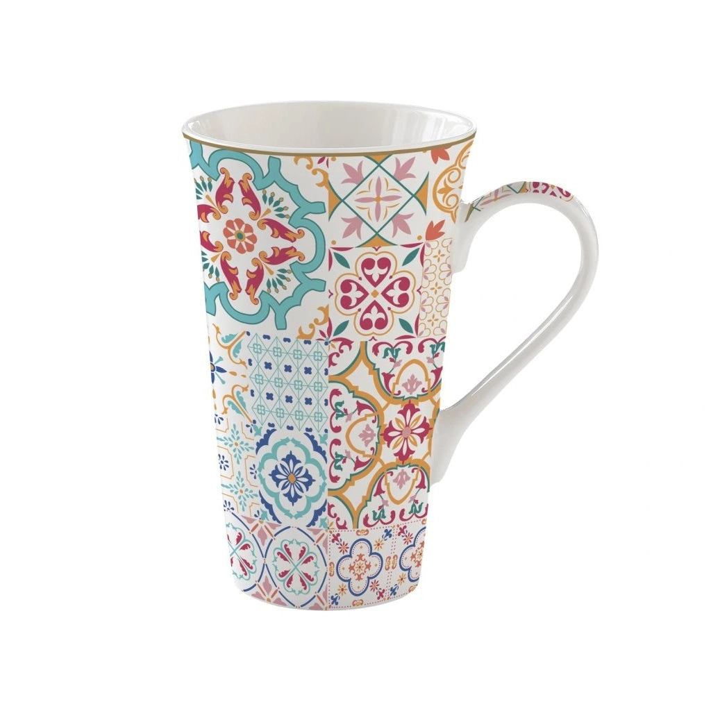 Stilīga un ietilpīga porcelāna krūze ar ziedu rakstu no kolekcijas SIRACUSA. Piemērota ikdienas tējas vai kafijas baudīšanai – porcelāns lieliski saglabā dzēriena siltumu un piešķir elegantu noskaņu. Krūzi var izmantot mikroviļņu krāsnī un mazgāt trauku mazgājamā mašīnā, tāpēc tā ir gan praktiska, gan skaista izvēle.