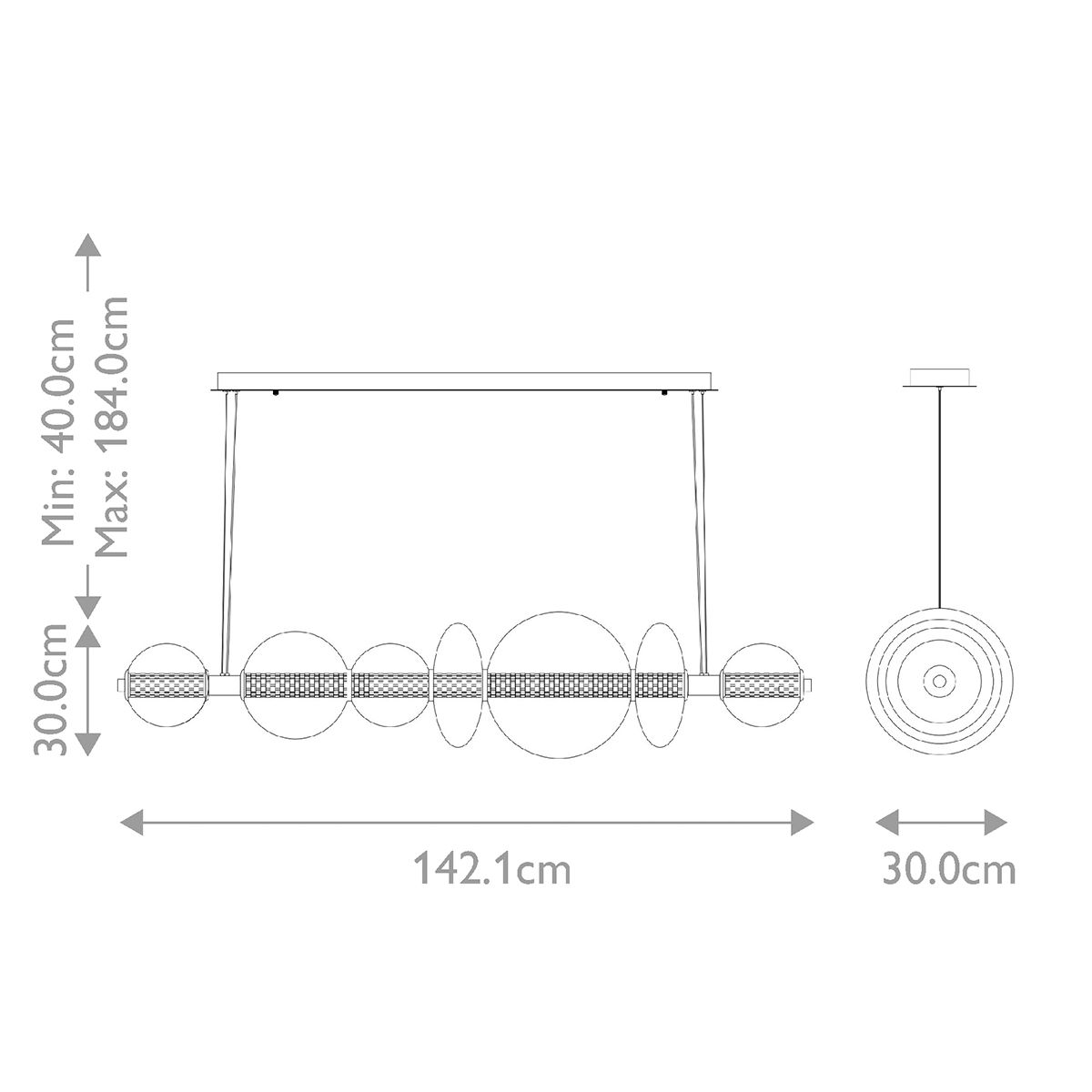 7 gaismas avotu lineārā piekaramā lampa