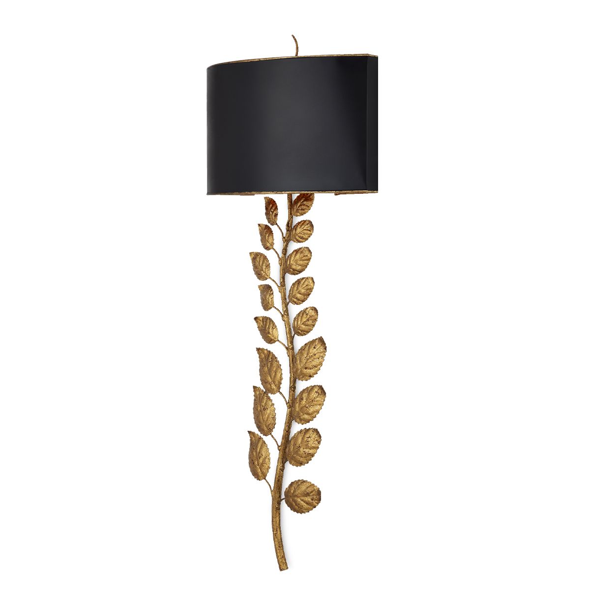 Dabai iedvesmota Birdwood sienas lampa izceļas ar greznu dizainu, kurā kāpjošu lapu motīvs veido lampas sienas plāksni. Roku darbs ar zelta lapu apdari piešķir lampai dziļumu un bagātību, ko papildina teksturēts zelta apmales akcentējums lampas metāla abažūra augšdaļā un apakšdaļā, kas izsmalcināti kontrastē ar satīna melno pārklājumu.