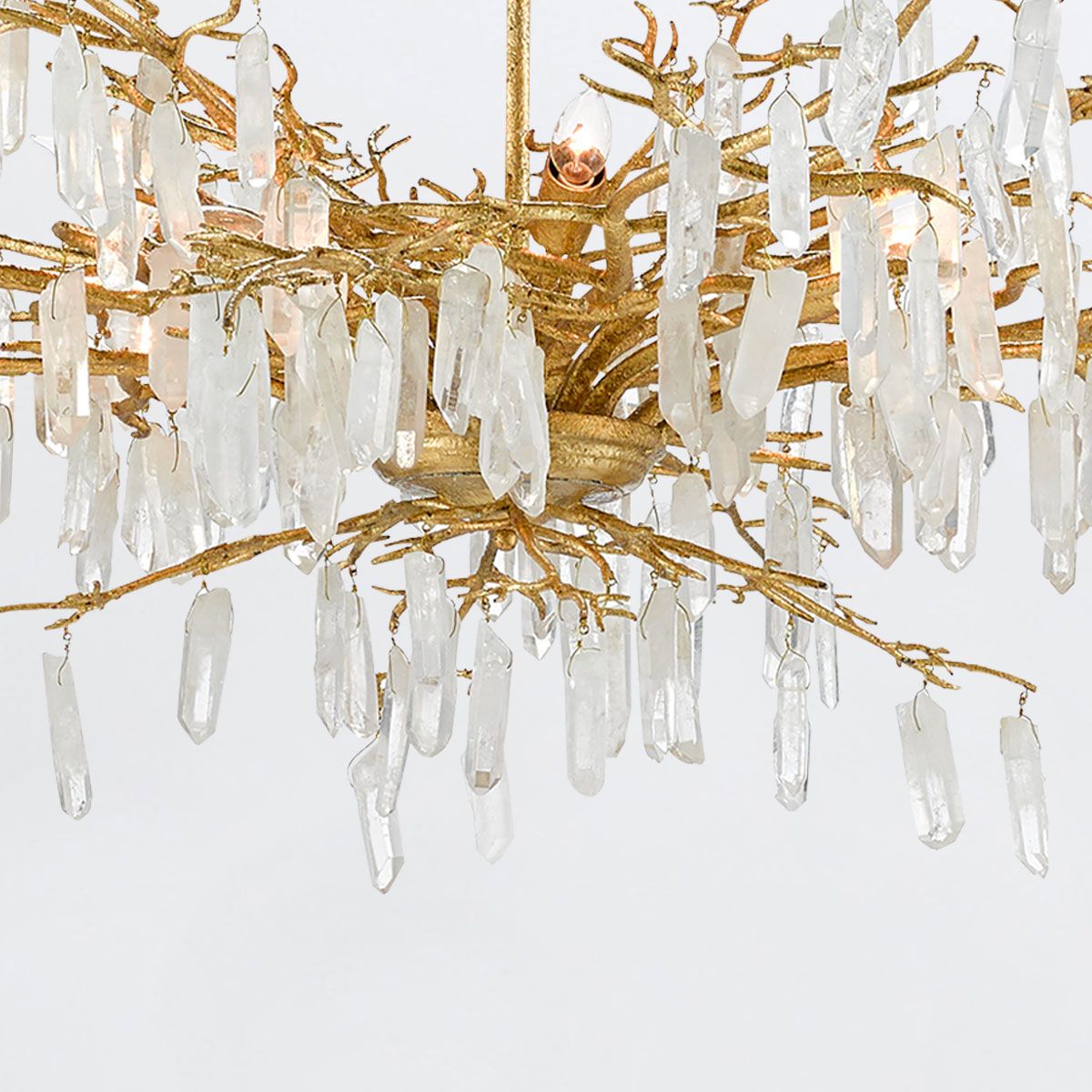 Forest Dawn lustra ir izcils mākslas darbs, kas greznota ar dabīgiem kristāliem. Skaistais Lucernes zelta tonis perfekti saskan ar kvarcu, radot elegantas un izsmalcinātas noskaņas zelta lustras dizainu. Šī kristāla lustra pieder Aviva Stanoff kolekcijai un piešķirs jebkurai telpai greznu, formālu akcentu.