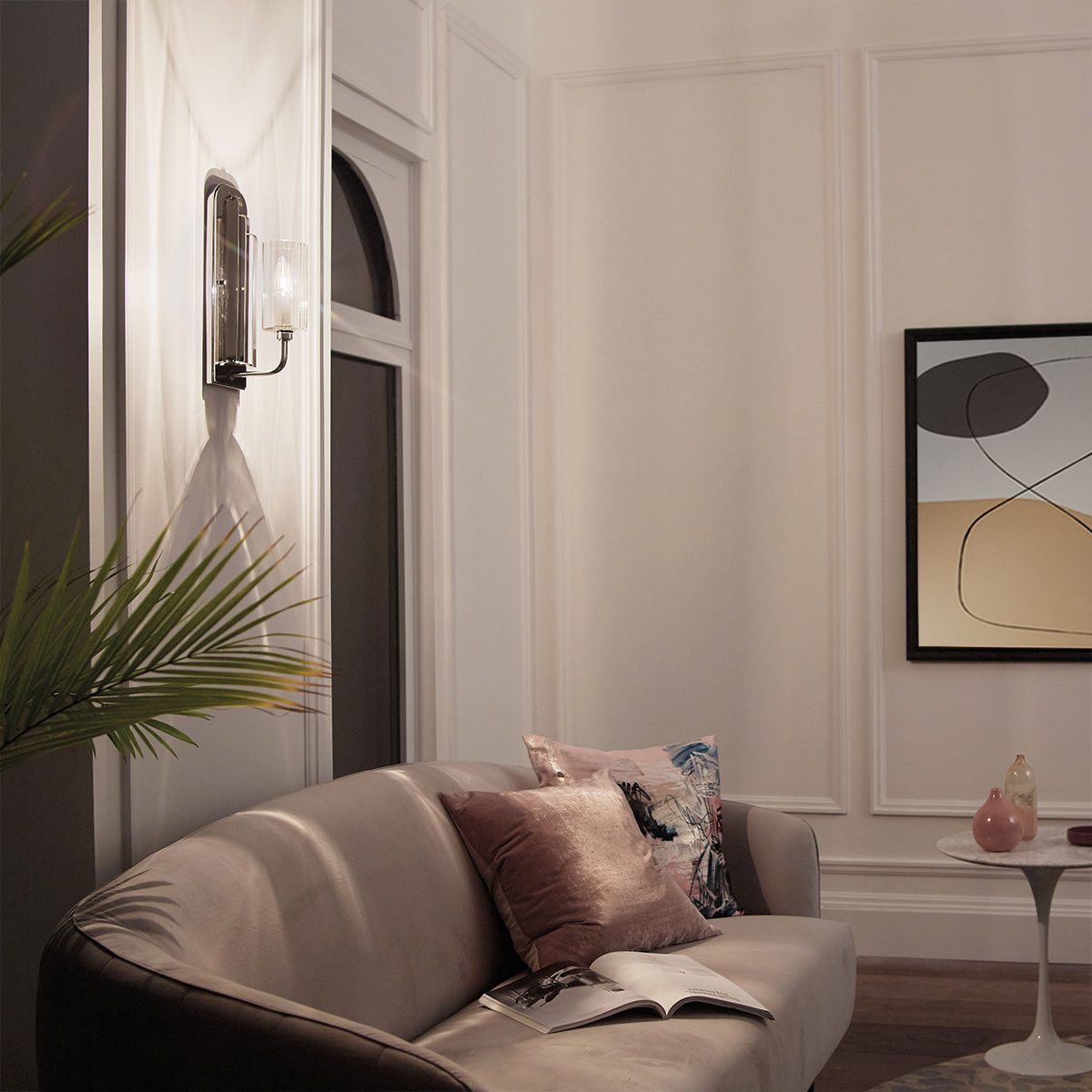 Šī augstā sienas lampa ir iespaidīgs akcenta elements, kas īpaši izceļas guļamistabā vai citās dzīvojamās telpās.
