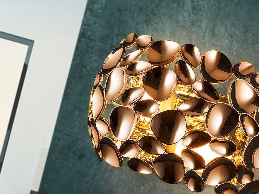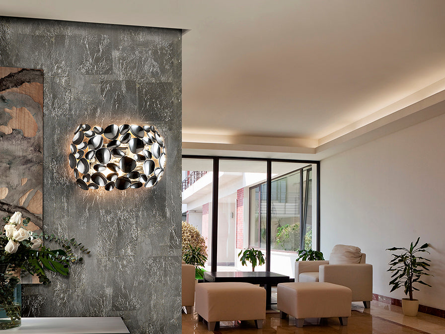 Eleganta sienas lampa ar diviem gaismas avotiem, izgatavota no metāla ar rozā zelta (rose gold) vai hromēta metāla apdari. Piemērota gan moderniem, gan klasiskākiem interjeriem kā akcenta vai funkcionālais apgaismojums.