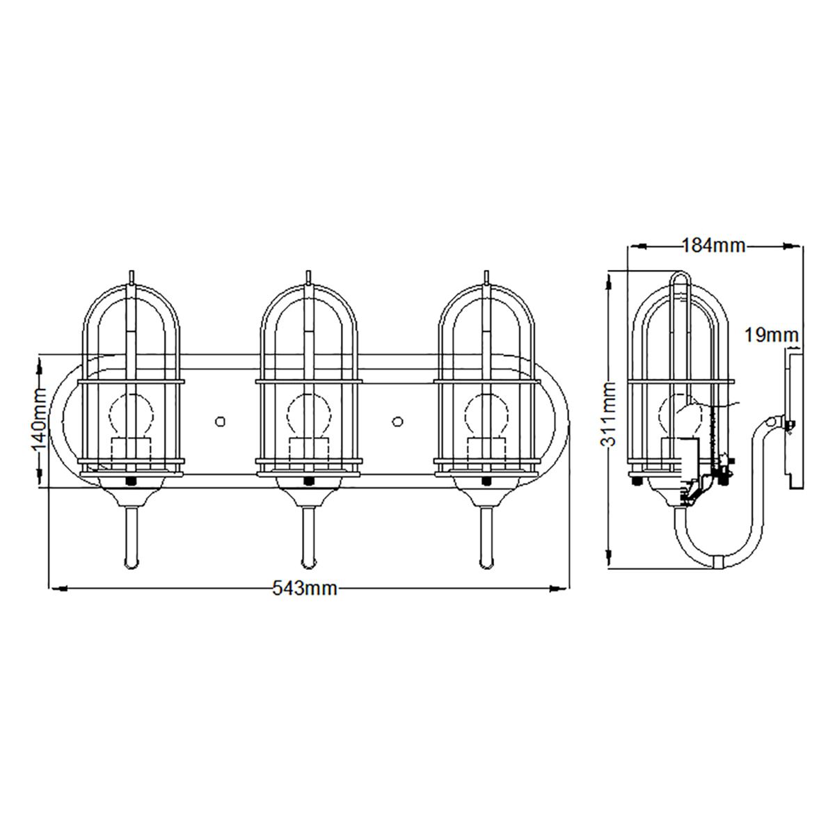 Urban Restoration sienas lampa virs spoguļa, 3 spuldzes